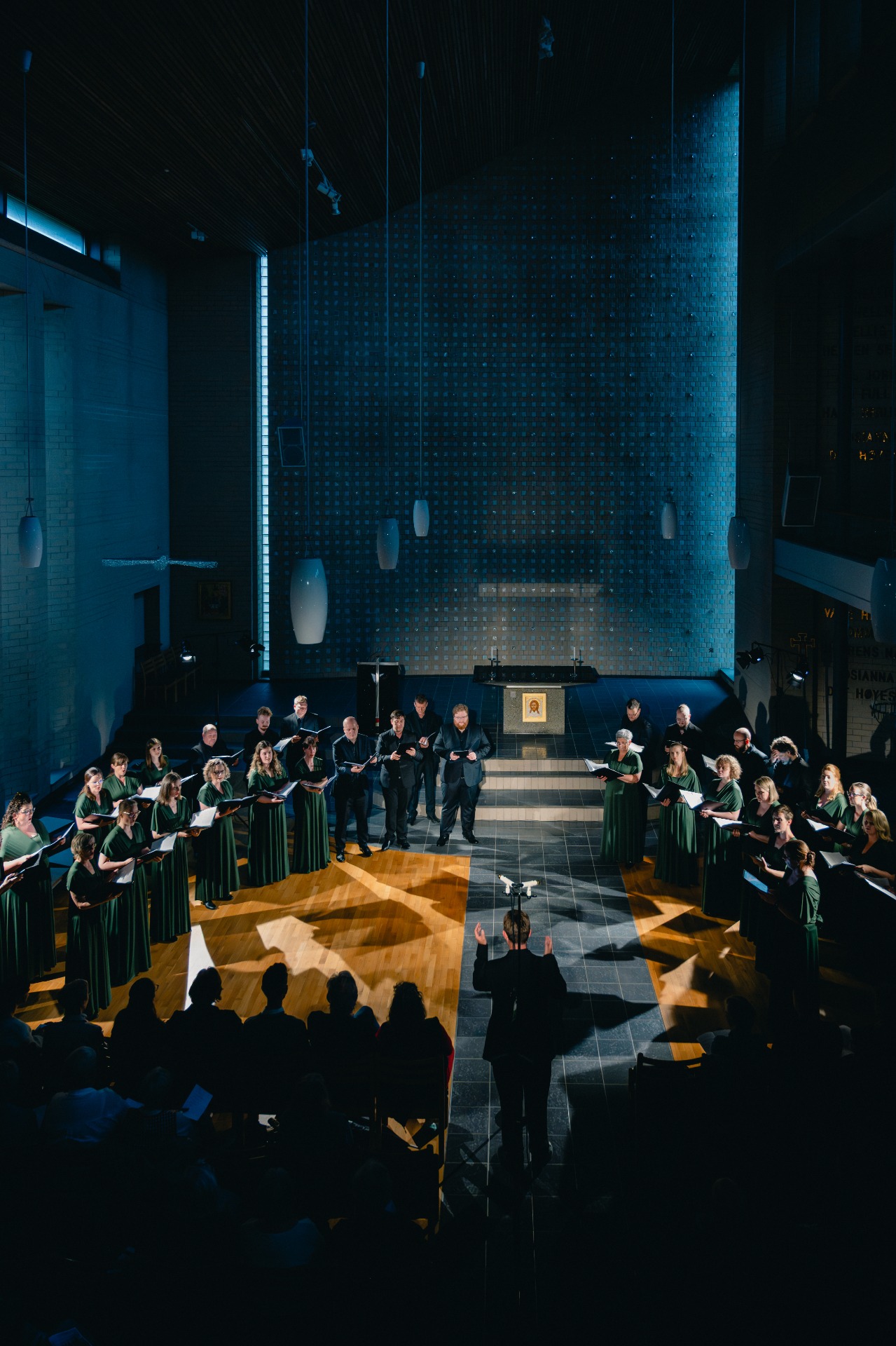 Med oss denne kvelden har vi koret "Stemmer" som blir dirigert av Tore Kloster, på piano har de med seg Harald Holtet.